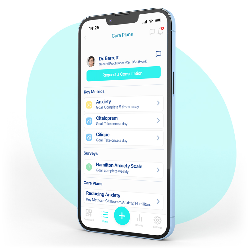 Connected Healthcare Practitioners can create and share their care plans with users including details of medication prescribed, dosage and frequency. Users and Healthcare practitioners can add notes to each care plan to support input evidence and create a clear historical record for everyone involved. Users can also set up reminders and alarms to ensure inputs for key metrics are not missed.